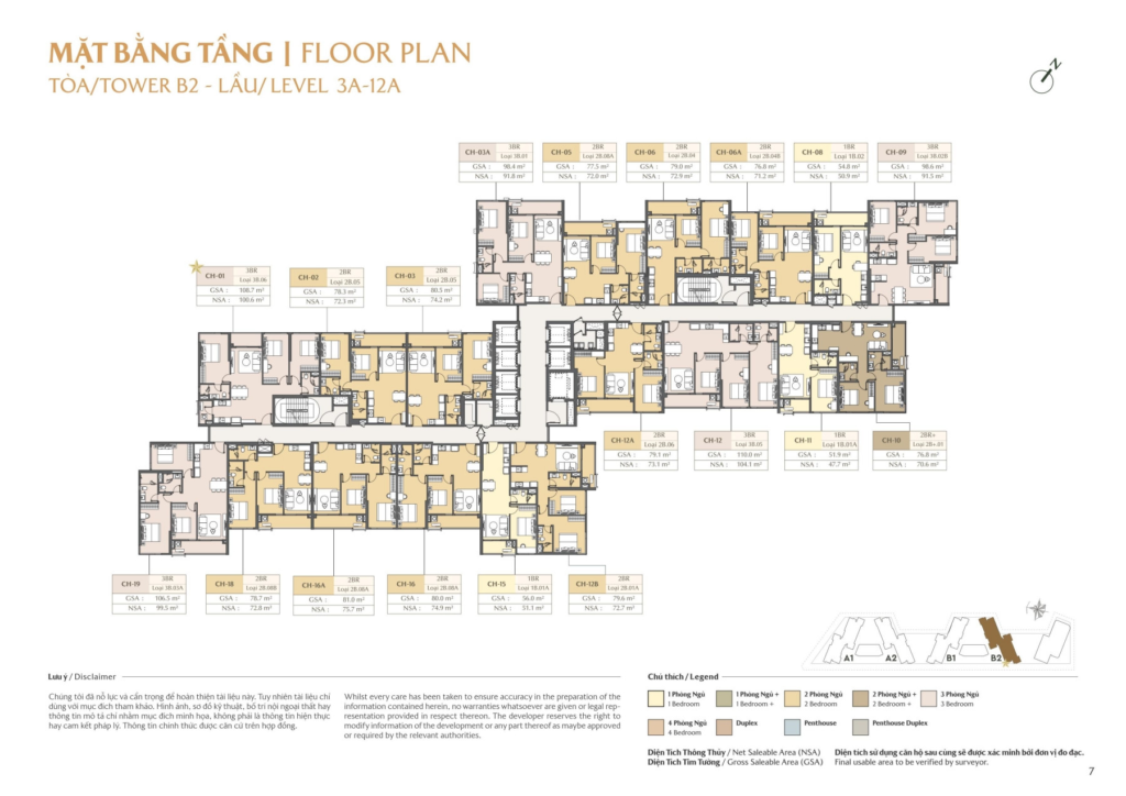• Tầng 3A–12A: Tầng điển hình