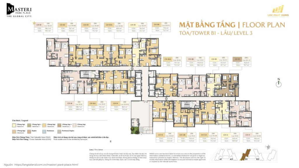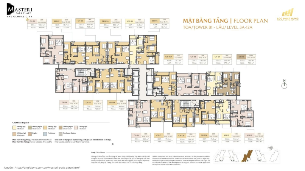 Mặt bằng Masteri Park Place: Phân tích layout chi tiết từng tầng và từng loại căn hộ tại The Global City