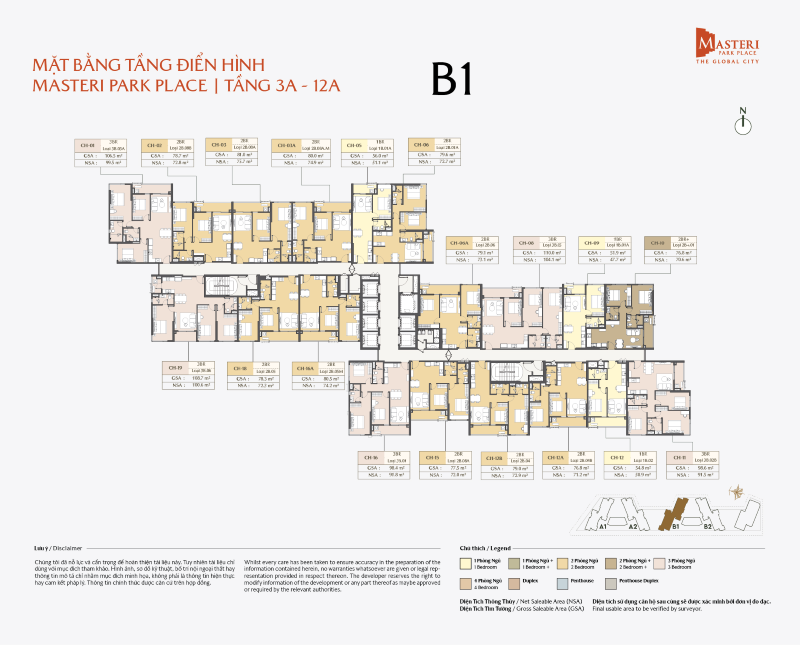 Mặt bằng Masteri Park Place tòa B1 và B2