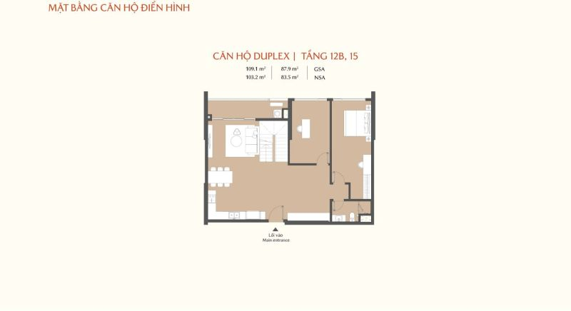 • Các tầng cao bố trí Duplex và Penthouse